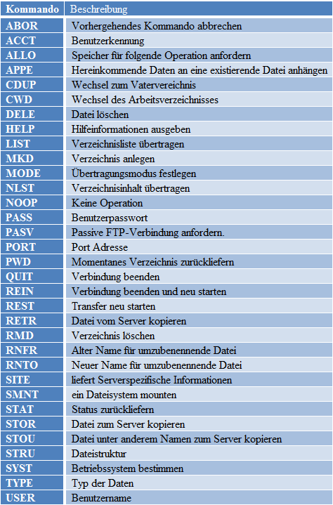 - Beim aktiven FTP öffnet der Client einen zufälligen Port und teilt dem Server diesen sowie die eigene IP-Adresse mittels des PORT-Kommandos mit.