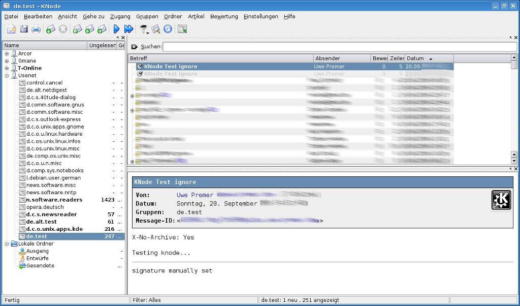 KNode ist ein Newsreader, der unter der grafischen Oberfläche KDE (Unix / Linux) läuft. Er ist in Deutsch und vielen anderen Sprachen verfügbar, kann mehrere Newsserver verwalten und wird ständig weiterentwickelt.