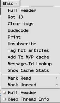knews bietet trotz des veralteten Programmcodes eine Menge nützlicher Features, die durchaus heute noch aktuell sind. Diese Features sind größtenteils über die Programm-Menü-Buttons "Post" und "Misc" erreichbar.