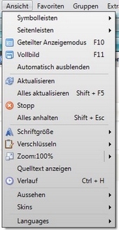 | Das Menü "Datei": | Das Menü "Ansicht": | Das Menü "Extras": | Das Menü "Hilfe": | |