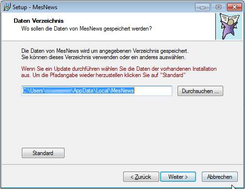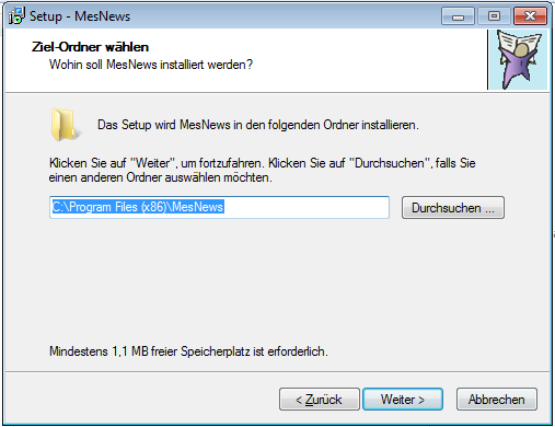 Die Programmdateien von MesNews dürfen innerhalb des Windows-Programmordners installiert werden; dort haben bekannterweise nur Administratorkonten Vollzugriff.