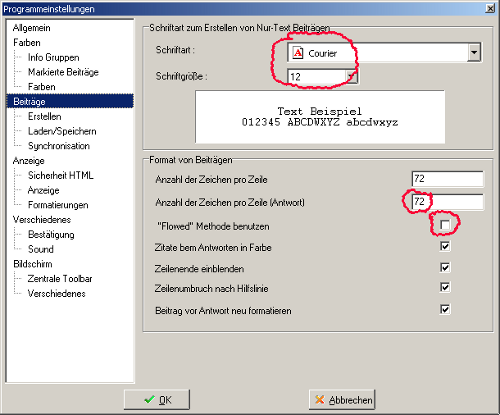 Folgende Einstellungen sollten noch vorgenommen werden (-> Optionen -> Programmeinstellungen, dort auf "Beiträge" klicken):