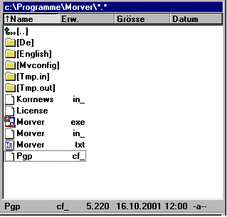 Falls du Morver und/oder KorrNews zum ersten Mal in diesem Verzeichnis installierst, solltest du jetzt die zugehörigen Ini-Dateien morver.in_ und/oder korrnews.in_ umbenennen in morver.ini und korrnews.ini. Bei Upgrades enthält die Datei morver.in_ gelegentlich Erläuterungen zu neuen Optionen, die du vielleicht lesen solltest. Bei Upgrades solltest du mal einen Blick auf die Änderungen werfen. Auch dort gibt es die eine oder andere Information. |