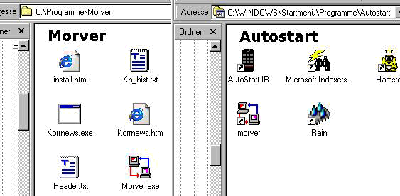 Morver im Autostartverzeichnis Bild 11: Link auf Morver in Autostart ![]() Zusätzlich kannst du jetzt noch in den Optionen von Morver (siehe Bild 2) die Option IconAtStartup aktivieren, damit der Morver beim Programmstart kein Fenster öffnet. |