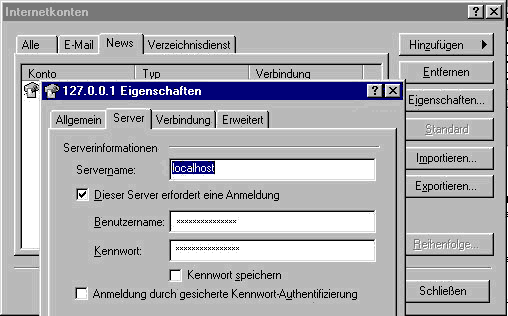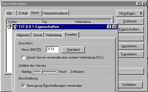 Versuche Verbindungsaufbau zu >127.0.0.1:nntp<