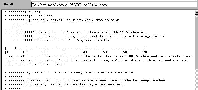 Sonstige Reader FreeAgent: Xnews: ![]() Außerdem ist wichtig, dass keine MIME-Header bei den Custom headers eingetragen werden! Morver erkennt den Zeichensatz nur ohne diese Headerzeilen richtig! |