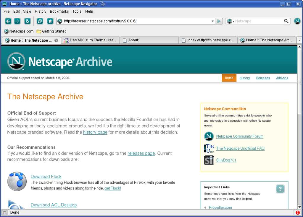 Deutsche Seiten- [1] lange eingestelltes Netscape-Portal im Webarchiv (Downloads leider dort nicht funktionsfähig)