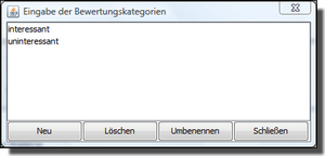 | Ab "Werk" sind bereits die zwei Bewertungskategorien "interessant" und "uninteressant" implementiert. Es können hier weitere, eigene Kategorien ergänzt werden. Diese Bewertungkategorien erscheinen, wenn man ein Posting per Rechtsklick anklickt. Klickt man dann auf das erscheinende Menü und die Bewertungskategorie, wird dieses Posting entprechend kategorisiert und erscheint mit in der Liste der Newsgruppen im linken GUI-Bereich, wie im folgenden Screenshot zu sehen ist. |