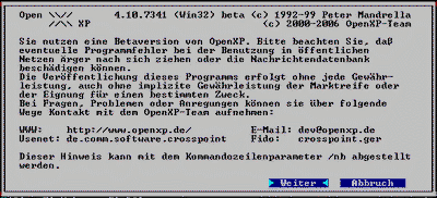 Für die anschließende Einrichtung von XP2 muß XP2 über das Desktop-Icon gestartet werden, damit die obigen Einstellungen gegeben sind. Die weitere Programmeinrichtung läuft dann genauso wie bei OpenXP.