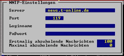 Bei "Servername" ist es ratsam, statt "News" besser den Namen des Newsservers (z.B. "T-Online" oder "Individual") einzugeben.