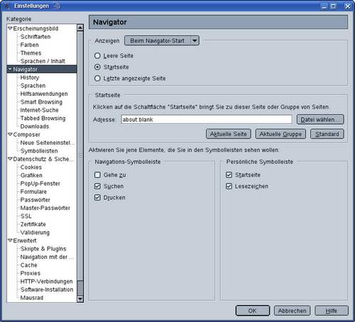Zu 1: hiermit wird die Webseite der unter Einstellungen -> Kategorie -> Navigator ->
