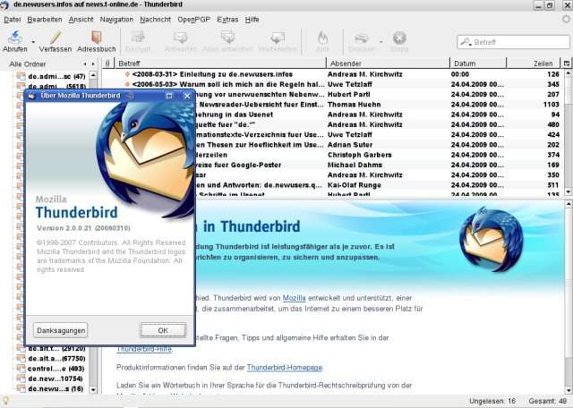 » Zu Thunderbird gibt es auch passende deutsch-sprachige Newsgroups: